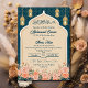 Teal Blue Gold Floral Islamic Muslim Wedding Invitation