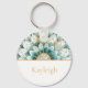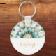 Teal Blue Gold Floral Mandala Personalised Key Ring