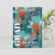 Unique and trendy congratulations graduate announcement and celebration party invitation card, framed with a stylish teal blue, aqua turquoise green and brown coloured abstract brushstrokes background. With room to customise or personalise with a photo, the name of the graduate, class graduation year, high school, future college or university name, and celebration party event information. Let the family, friends and neighbours know there is a happy graduate ready to conquer the world, and invite everybody to come celebrate the happy event with you!