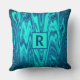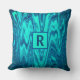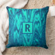 Teal Blue Green Abstract Monogram Initial Cotton Cushion