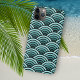Contemporary seafoam, seaglass, teal blue green, and black ombre coloured retro abstract geometric Japanese Chinese Seigaiha scales pattern design. Beautiful, modern, and cool cover for the trend-savvy and art-loving hip trendsetter, artsy motif lover. This design is available in Apple iPhone 6, 7, and 8 Plus, 10 or X, XR, XS, 11, 12, 13, 14 Mini, Plus, and Pro Max cellphone cases. Show off your style, look fashionable, and feel stylish with a unique design on a mobile device accessory of your choice.
