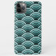 Contemporary seafoam, seaglass, teal blue green, and black ombre coloured retro abstract geometric Japanese Chinese Seigaiha scales pattern design. Beautiful, modern, and cool cover for the trend-savvy and art-loving hip trendsetter, artsy motif lover. This design is available in Apple iPhone 6, 7, and 8 Plus, 10 or X, XR, XS, 11, 12, 13, 14 Mini, Plus, and Pro Max cellphone cases. Show off your style, look fashionable, and feel stylish with a unique design on a mobile device accessory of your choice.