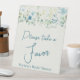 Teal blue green on ivory floral bridal shower favors sign, table top sign.