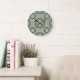 Teal Blue Green Grey Ochre Hip Bohemian Bali Art Large Clock