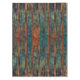 A busy, visually lined and textured abstract pattern in contrasting teal blue green and orange, with lime and eggplant accents. A somewhat asymmetrical design, my own modern and original, colourful graphic artwork.