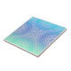 Unique vibrant decorative ceramic tile design featuring a seamless geometric pattern in shades of faux silver and teal, green, blue gradient.