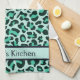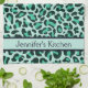 Teal Blue Leopard Print Retro Kitchen Towel