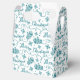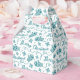 This Christmas season favour gift box has a repeating pattern of teal mittens with matching snowflakes on a white background. The script "Merry Christmas" is between the mitten images.