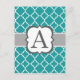 Teal Blue Monogram Letter A Quatrefoil Postcard