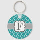 Teal Blue Monogram Letter F Quatrefoil Key Ring