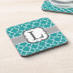 Teal Blue Monogram Letter L Quatrefoil Coaster