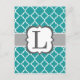 Teal Blue Monogram Letter L Quatrefoil Postcard