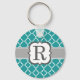 Teal Blue Monogram Letter R Quatrefoil Key Ring