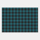 Blue teal and black buffalo plaid pattern wrapping paper sheets.