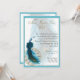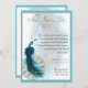 This beautiful and elegant design, called Teal Blue Peacock Plume New Year's Eve party invitation, has a bright white background with a teal border. In the background is a pale peacock tail feather with a full peacock illustration in the lower right corner. The peacock is perched on an antique clock face. At the top it says New Year's Eve and the year in gold. This would be perfect for your party or event!