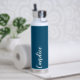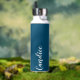 Gift your wedding bridesmaid or maid of honour with this trendy, vacuum Insulated water bottle that features her name in white, stylised script on a teal blue colour background designed to match your wedding colour scheme. Personalise bottle by editing and replacing name with your own as desired. Select your water bottle style.