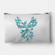 Teal Blue Phoenix Rises on Silver Accessory Pouch