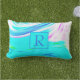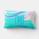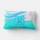 Teal Blue Pink White Abstract Waves Monogram Cute Lumbar Cushion