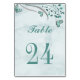 teal blue romantic butterflies leaves botanical table number