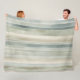 Teal Blue Sage Green Cream Distressed Stripe Large Fleece Blanket
