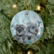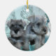 Two cute silver grey Schnauzer puppies teal blue Christmas ornament.