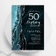Teal blue and silver agate 50th birthday party invitation. Elegant modern design featuring turquoise watercolor agate marble geode background, faux glitter silver and typography script font. Trendy invite card perfect for a stylish women's bday celebration. Printed Zazzle invitations or instant download digital printable template.