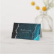 Teal Blue Silver Agate Script Wedding Table Place Card