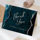 Teal Blue Silver Agate Script Wedding Thank You Card