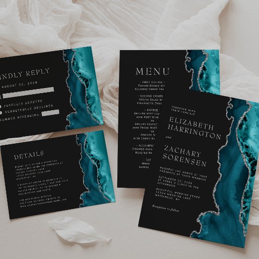 Elegant Teal Silver Agate Dark Wedding SuiteDesigned by Akhates Designs