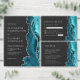 The right edge of this elegant modern wedding invitation features a teal blue watercolor agate border trimmed with faux silver glitter. The customisable text combines silver grey serif, copperplate and italic fonts on a slate black background. The reverse side features a matching teal and silver agate design.