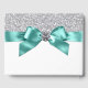 Teal blue and silver guest book with pretty teal blue ribbon and bow with diamond centre on a silver glitter background. This elegant teal blue guest book is easily customised for your event by simply adding the text of your choice in the font style you prefer. This is a printed design with no rel glitter, diamonds, ribbons, bows, etc.