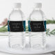 Teal Blue Silver Glitter Agate Dark Wedding Water Bottle Label