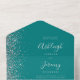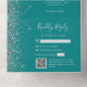 Teal Blue Silver Glitter QR Code Wedding All In One Invitation