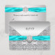 Elegant teal blue diamond centre satin ribbon bow on a silver diamond lace overlay response card RSVP. This beautiful teal blue RSVP is easily customised for your event with your details in the font style and colour and wording of your choice. This is a printed design with no real jewels, bows, glitter, etc.