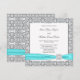 Elegant teal blue with silver lace wedding invitations. Add your details to the front and back by adding your event details, font style, font size & colour, and wording.