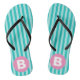 Teal Blue Vertical Striped Pink Circle Monogram Jandals