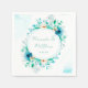 Teal Blue Watercolor Floral Geometric Wedding Napkin
