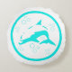 Teal blue white DOLPHIN bubbles nautical Round Cushion