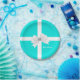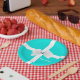 Teal Blue & White Elegant Glam Diamond Bow Paper Plate
