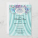 Teal Blue White Purple Floral Birthday Party Invitation