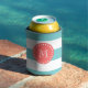 Teal Blue White Stripes Pattern, Coral Monogram Can Cooler