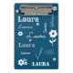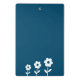 Teal Blue with White Flowers, Customised Mini Clipboard