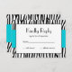 A modern teal blue and black zebra RSVP flat card.