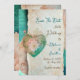 Teal Blush Lace Heart Rococo Wedding Save the Date
