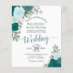 These affordable, budget friendly wedding invitations are the perfect choice for class, style, and beauty on a budget. The elegant design features hand painted watercolor roses in shades of teal, turquoise, aqua, and cyan, with a bevy of eucalyptus leaves and greenery. The typography features fancy script calligraphy, and the back is a deep marbled teal colour. Wonderful way to invite your friends and family to share in your joy on your special day without breaking the bank.