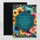 A vibrant display of botanical artistry featuring rich teal, sunflower yellow, and fuchsia blooms. This design evokes a lush, enchanting atmosphere for a special occasion. Delicate foliage and subtle shimmering accents enhance the opulent feel.