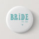 Pretty Bride to Be cards, tote bags, T-shirts, mugs, buttons, and other bride to be items with teal text design and a small teal flower.