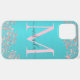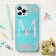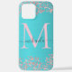 Teal Brushed Metal Rose Gold Glitter Monogram iPhone Case