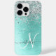 Teal Brushed Metal Silver Glitter Monogram Name Case-Mate iPhone Case