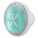 Teal Brushed Metal Silver Glitter Monogram Name Ceramic Knob